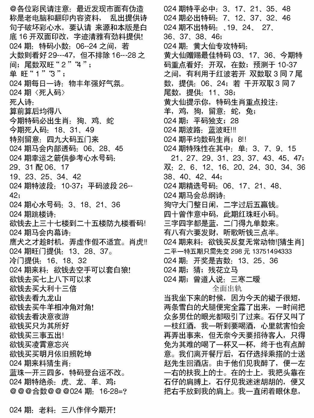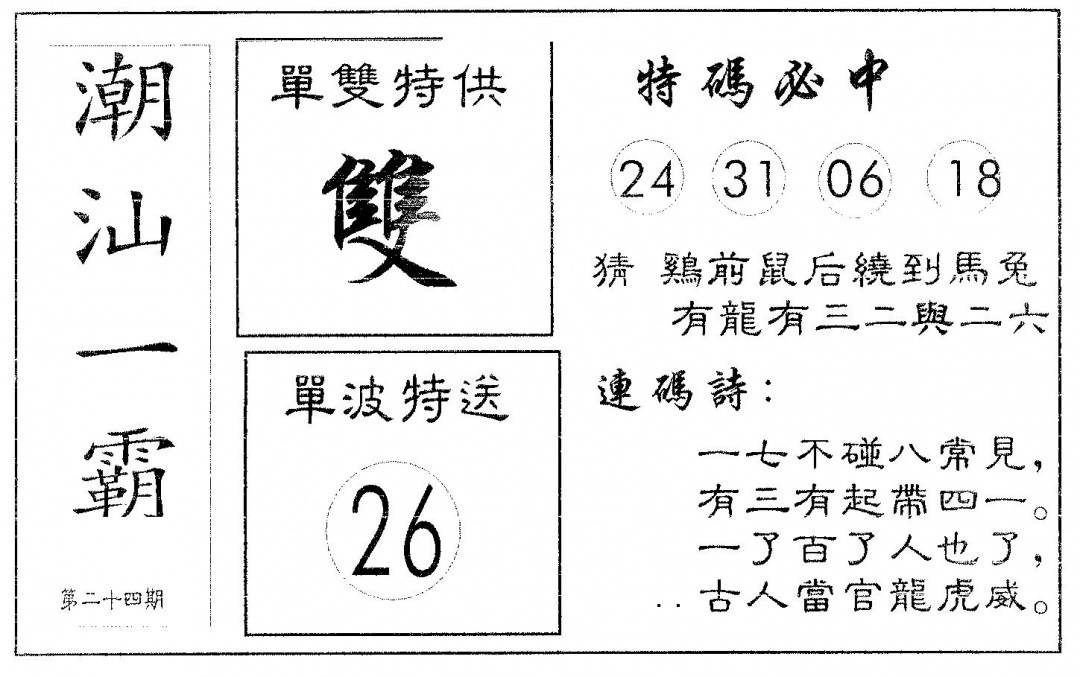 郑小姐特码报A