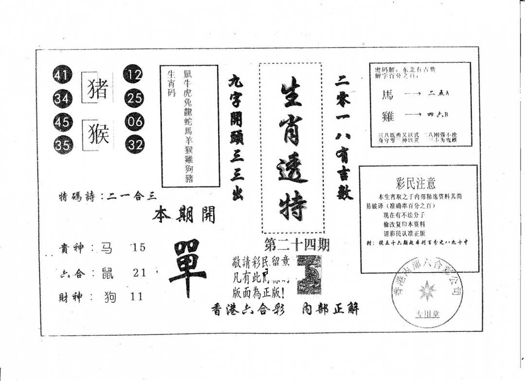 今日抓特码A(正版)