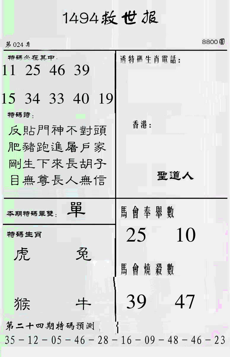 曾道人特码救世报B